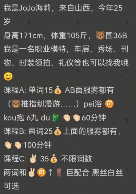 双井附近的服务系小姐姐,有小项和中项可以选择,小项手出3张,中项口出4张,上门5张。我比较喜欢口,就选 ...