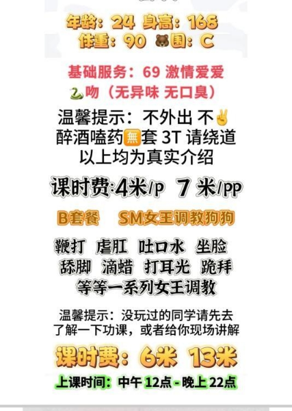柔柔老师是在电报上无意间发现的,发的照片看着还不错,离的不是很远,介绍说的服务按照课表做,服务内容 ...