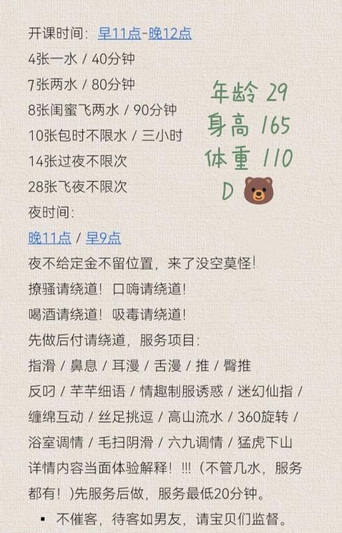 价格:400一次600九十分钟不限次颜值:不太好看,身材有点微胖服务:没得话说,态度好,认真不催客,满钟走人 ...