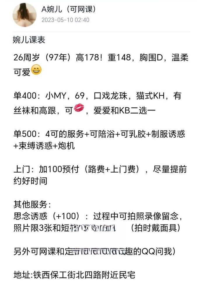 这妹妹住在浑南。位置很好停车。自己的房。照片与本人无异。和她在一起。有情人的感觉。帮你洗澡。非常温顺 ...