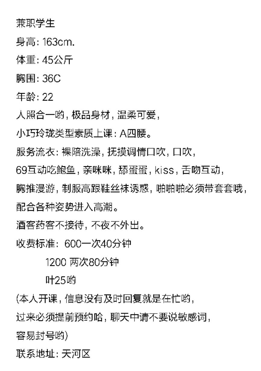 在体育西路中等小区。门禁方便,环境安静私密,年龄段23到25吧,相似度7成,脸蛋圆润,丰满类型身形微胖, ...