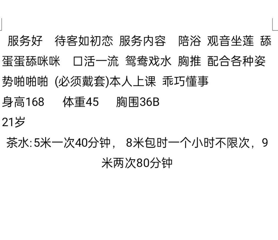 身材匀称,胸有C以上弹性可以,颜值7分中等,珠圆润滑不算很优秀的,但热情态度。待人细心,会浴室调情,外 ...