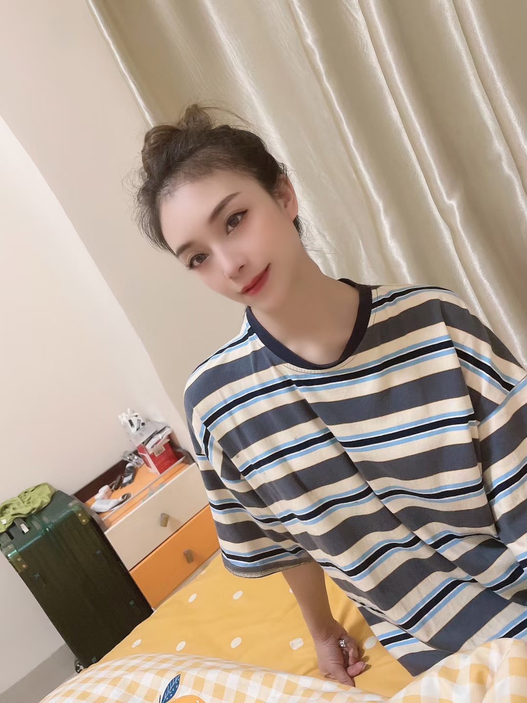 第一眼给人的感觉就是很爱干净,打扮的话比较简洁,本狼挺喜欢这样类型的,照片胸可能挤的,B+不到C,小巧 ...